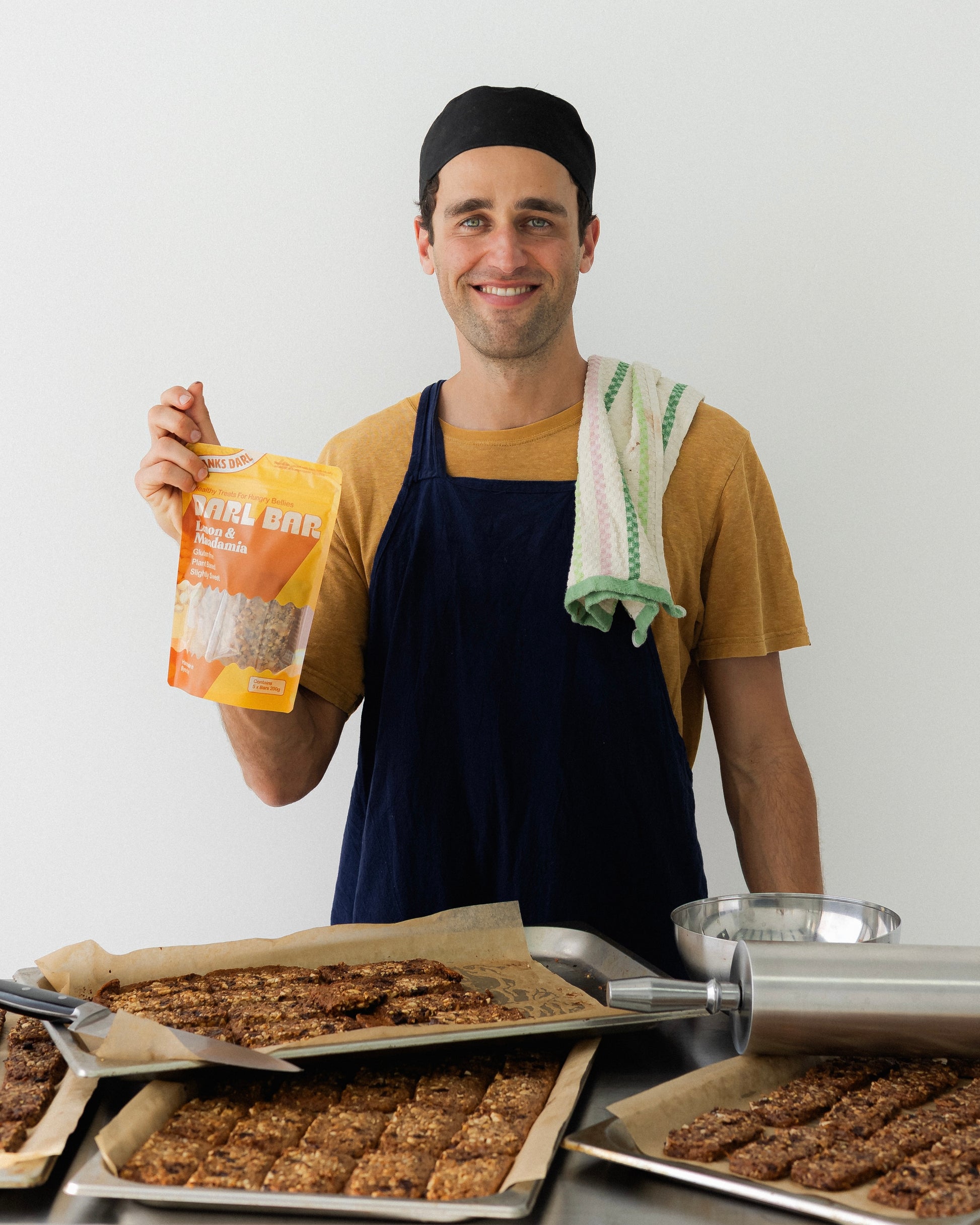Tuesday morning at 7:45 is the most important time of my week. It’s when I arrive at our kitchen to spend the day making Darl Bars. I bake in small batches so our bars are always fresh. The kitchen is located 30 minutes inland of Byron Bay in the Northern Rivers hinterland and is surrounded by macadamia farms. I like how the macadamia oil we use in our recipes is made from many of the macadamias harvested from the farms surrounding our kitchen.